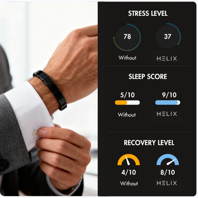 Give Helix 30 days. That's all. Wear it through meetings, workouts, and those long days that used to drain you. Feel your drive return, your focus sharpen, your natural power reignite. Not feeling it? Full refund. No questions asked. Just results or your money back.